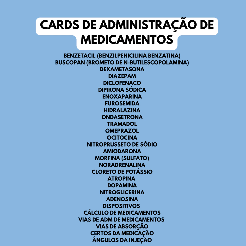 Os Cards de Administração de Medicamentos são indispensáveis para profissionais que lidam com prescrições e preparo de fármacos no dia a dia. Com conteúdo direto, essencial e organizado de forma prática, são ideais para consultas rápidas durante o plantão.
